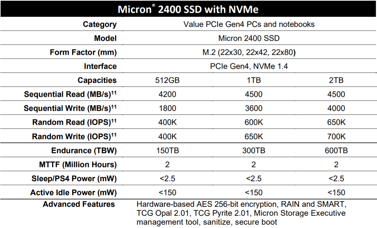 Der amerikanische Halbleiter- und Speicherhersteller Micron hat seine neuesten SSDs mit NVMe-Protokoll vorgestellt. Die QLC-Speicher erreichen durch den Aufbau mit 176 Layern eine sehr hohe Speicherdichte. So ist selbst der nur 3 Zentimeter lange SSD-Riegel mit einer Kapazität von 2 Terabyte erhältlich.